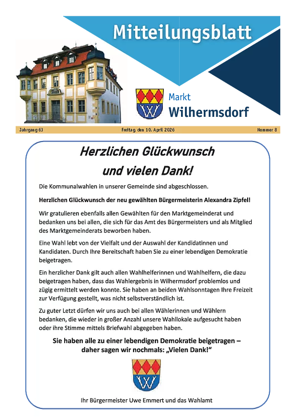 Das Mitteilungsblatt erscheint im zweiwöchigen Rhythmus in den ungeraden Kalenderwochen.