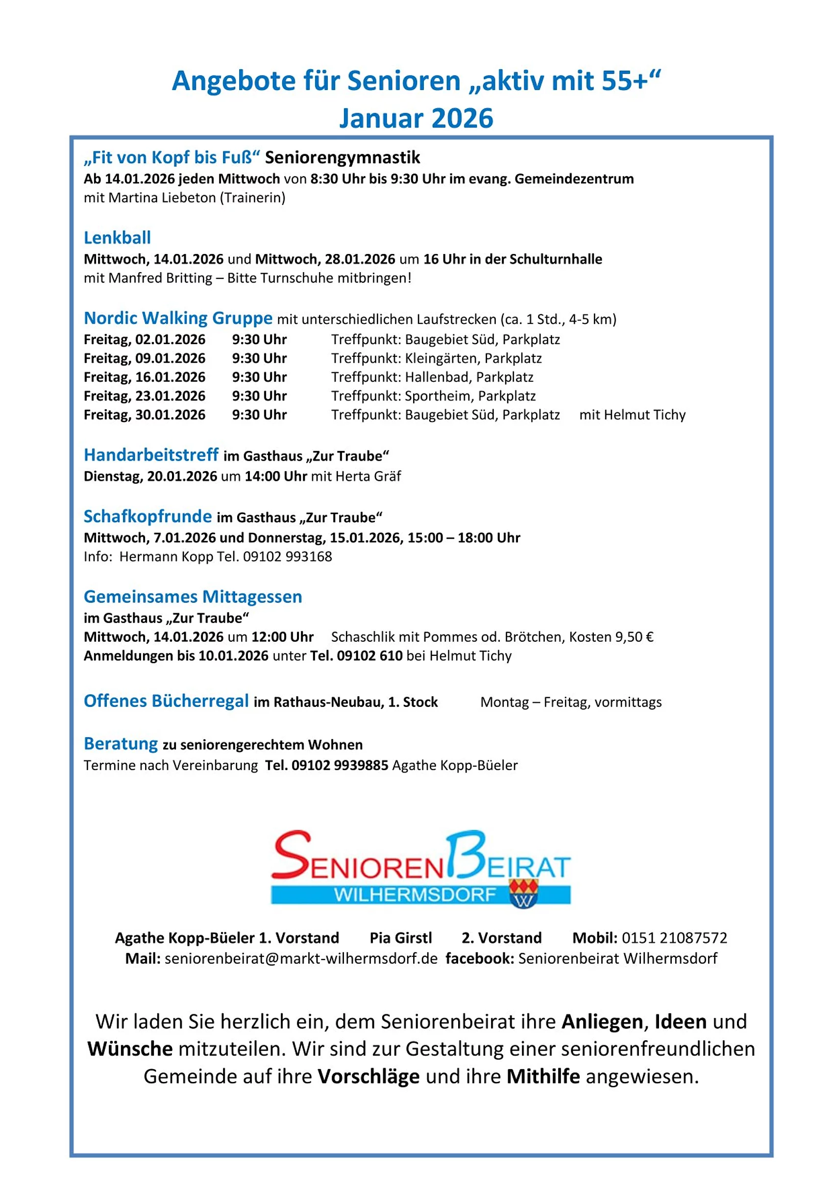 Hier werden wir Sie über die kommenden Veranstaltungen des Seniorenbeirats informieren!